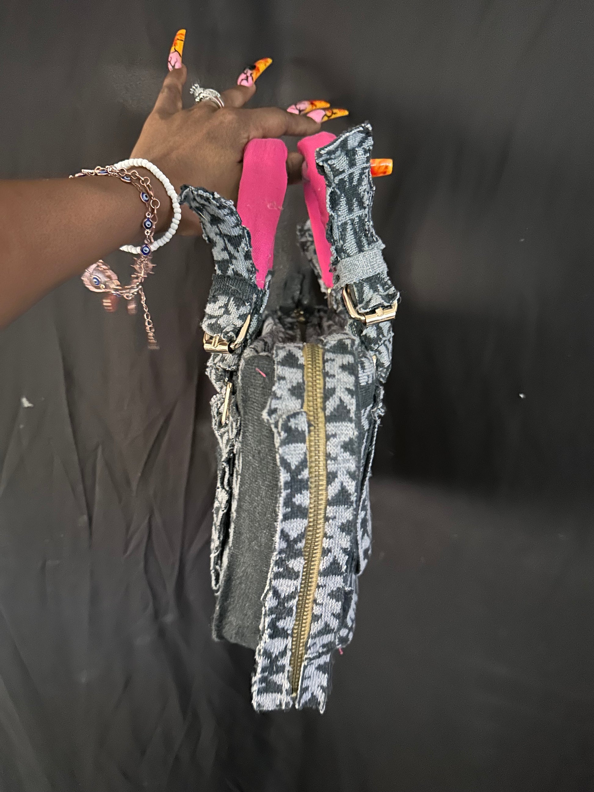 Cute Gray and pink sweater tote The cute grey and pink sweater tote is the perfect accessory for any outfit. With its spacious design and soft fabric, it's both fashionable and functional. Plus, it's easy to carry around and will keep your belongings safe and secure.