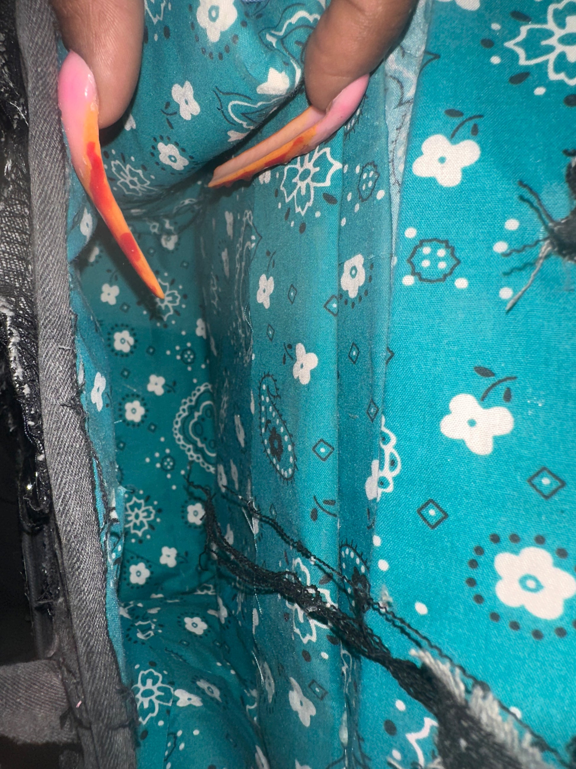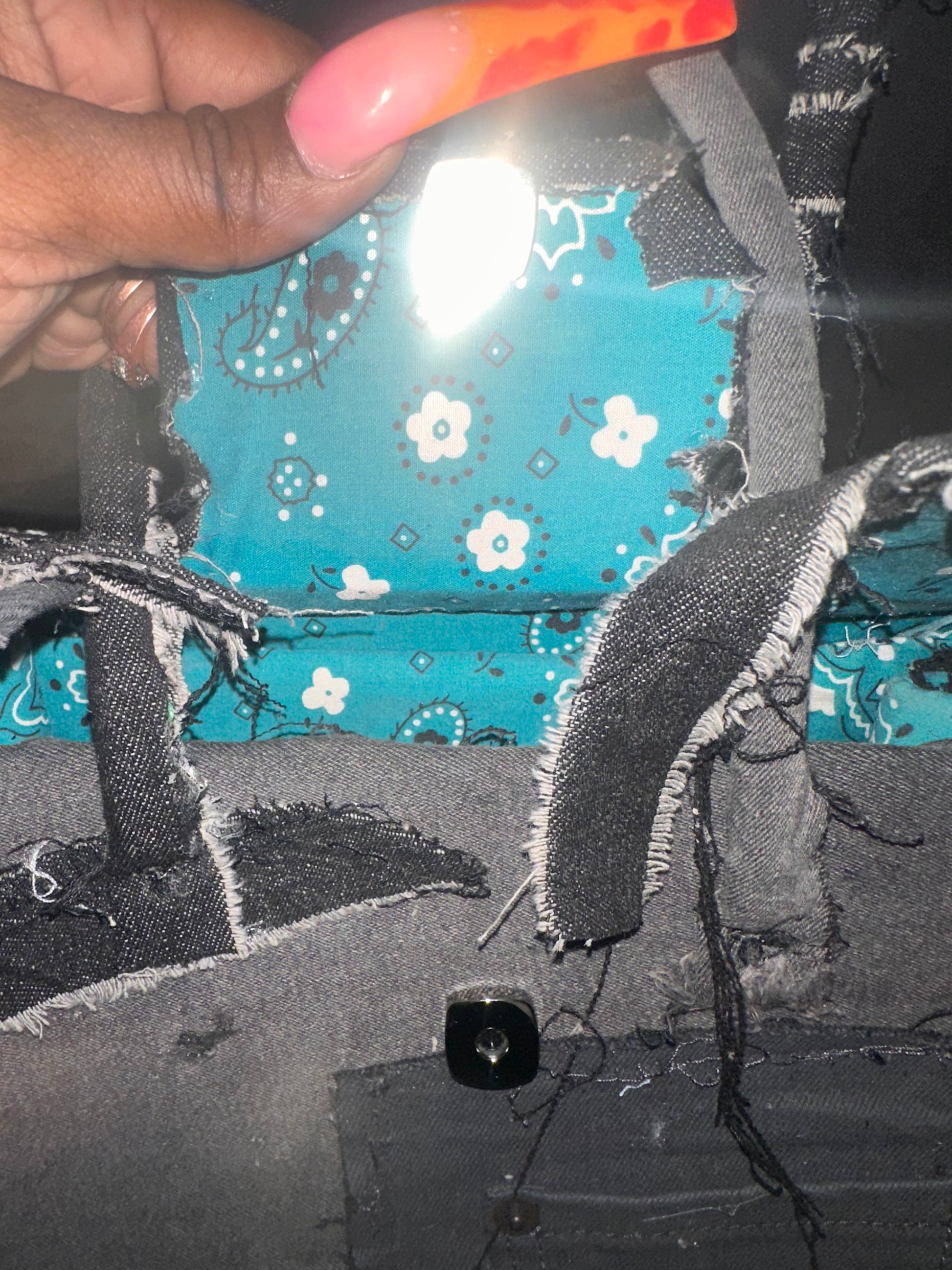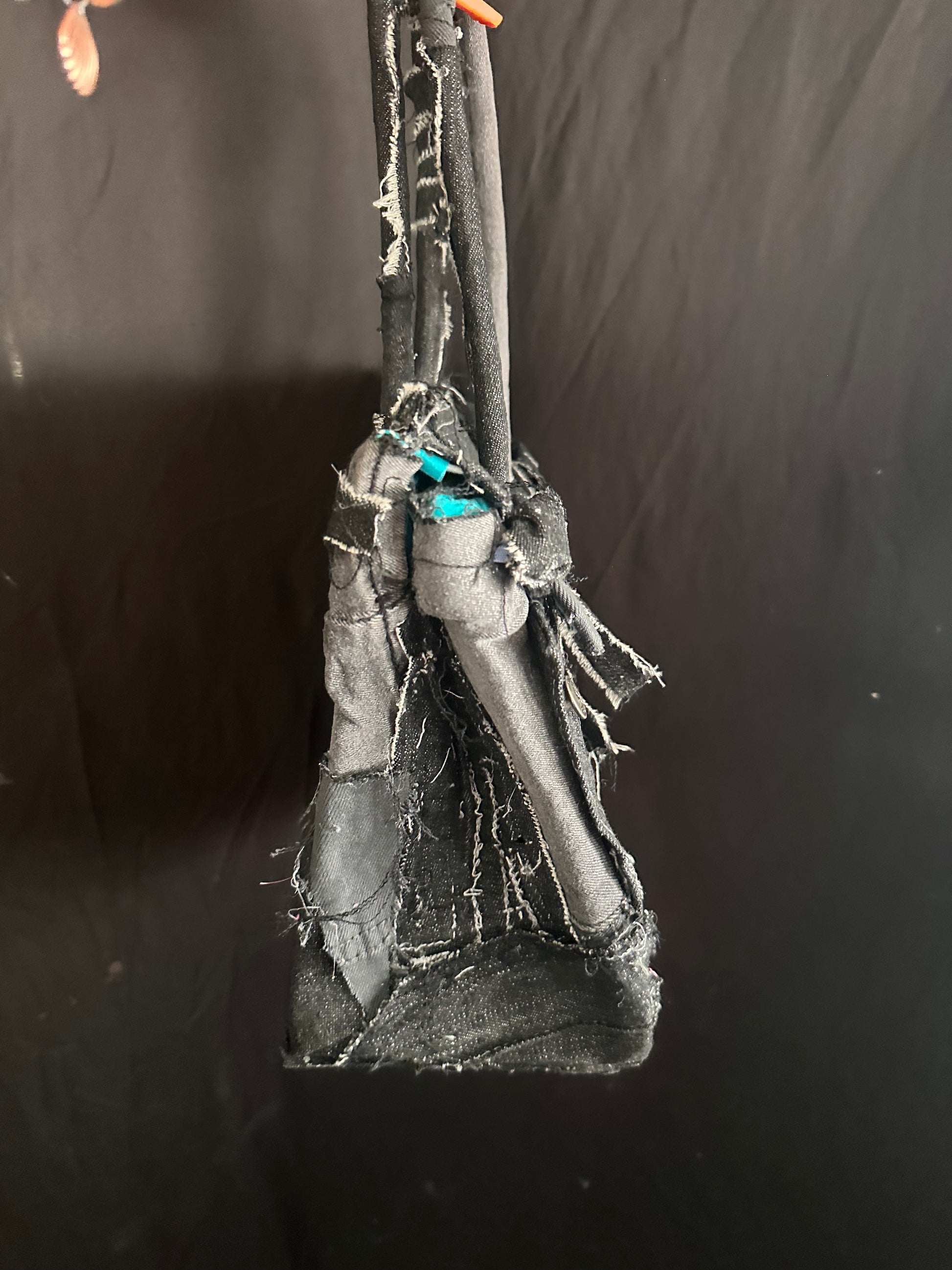Distressed black denim bag